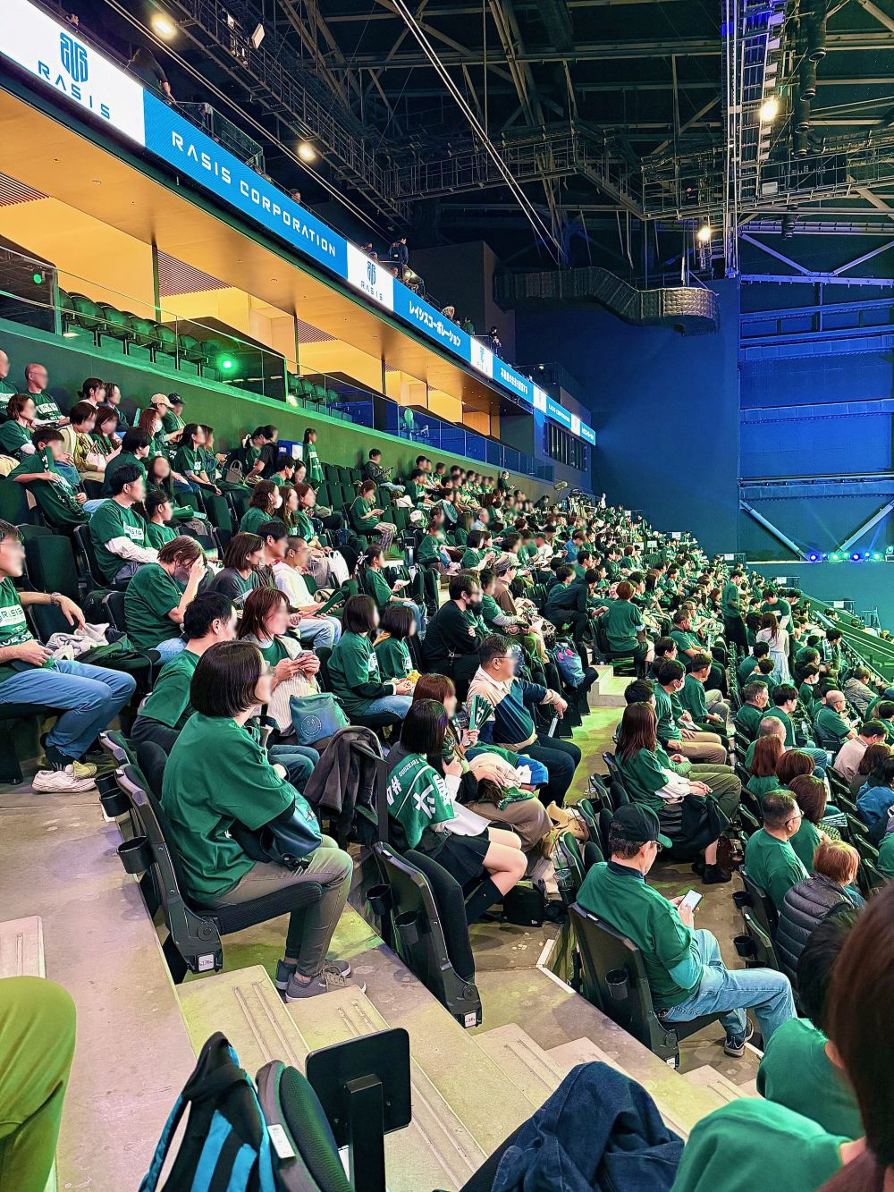 レイシスコーポレーション協賛オリジナルTシャツでジーライオンアリーナもストークスグリーンに染まりました👕