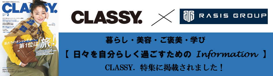雑誌『CLASSY.』2月号の特集「日々を自分らしく過ごすためのInformation」にて、私たちレイシスコーポレーションをご紹介いただきました。