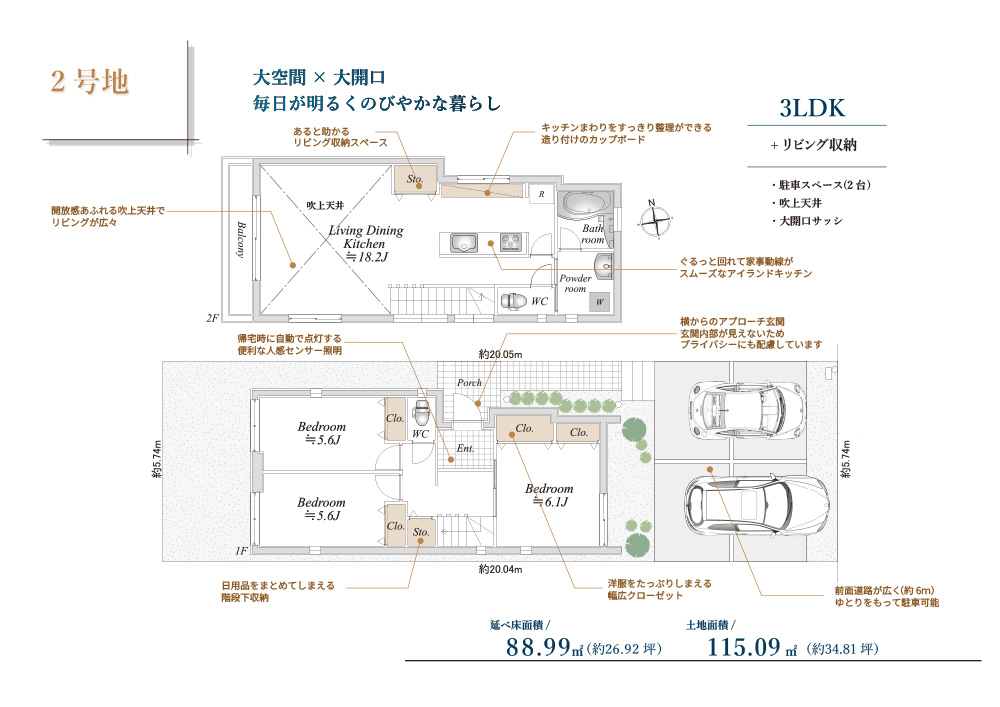 | 土地・延床面積 | 土地面積:115.09㎡ 延床面積:88.99㎡ |
