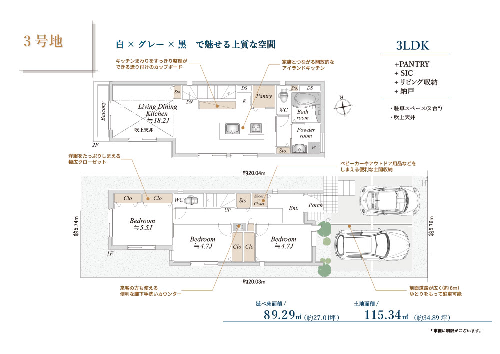 土地・延床面積 土地面積:115.34㎡ 延床面積:89.29㎡