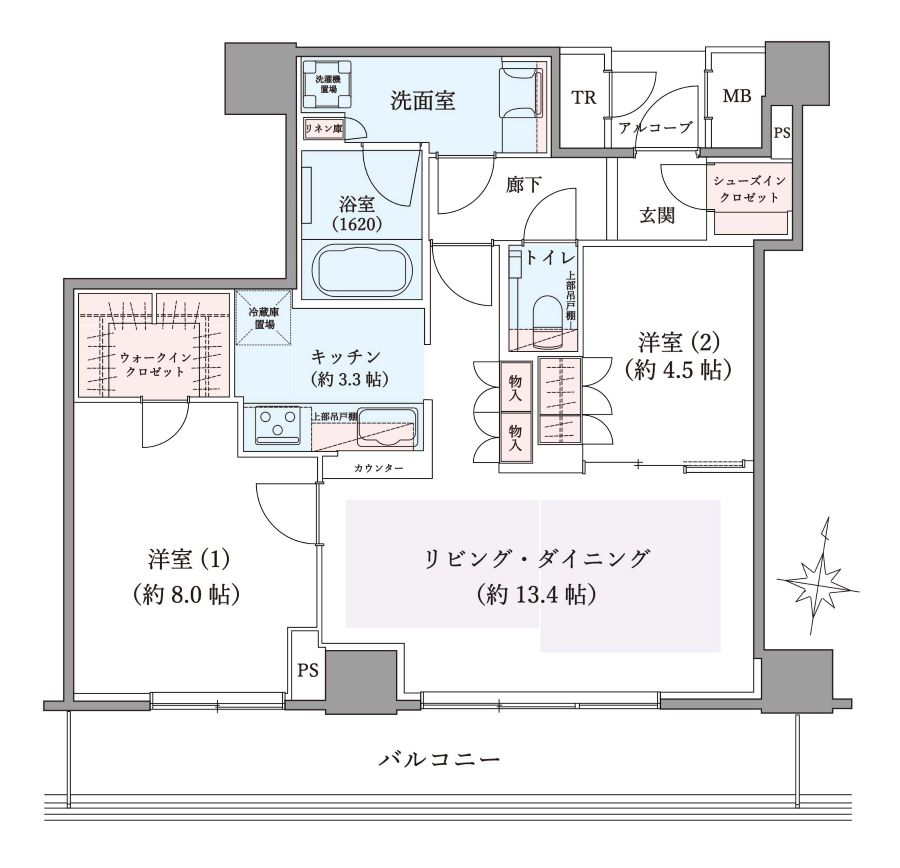 | 間取内訳 | LDK 16.7帖/ 洋室 8.0帖/ 洋室4.5帖 |