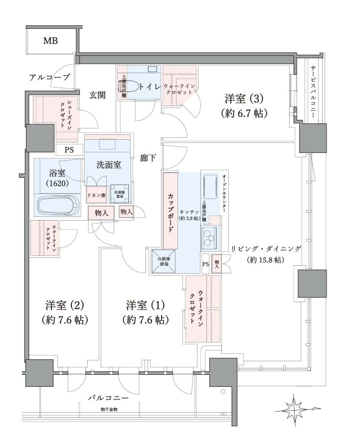 | 間取り内訳 | LDK19.6帖/ 洋室7.6帖・7.6帖・6.7帖 |